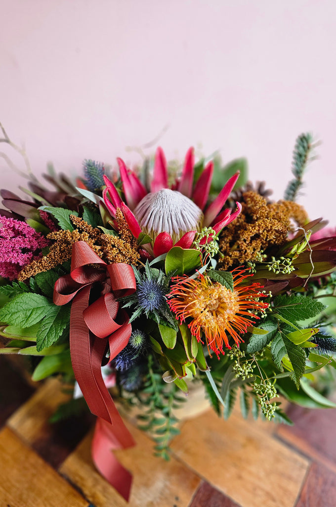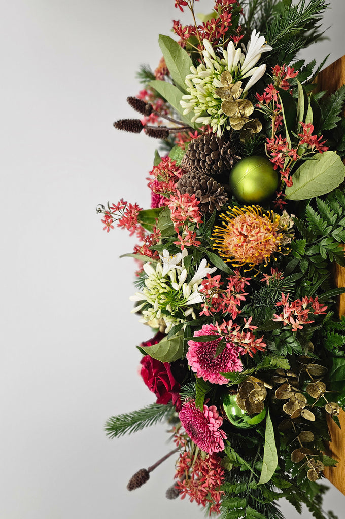 *PLEASE NOTE each table arrangement is unique and our florist will create a beautiful arrangement on the day of your order using fresh flowers we have in stock for the day in a Christmas theme and it may look different to the ones pictured. The images are just a few examples or previous work.