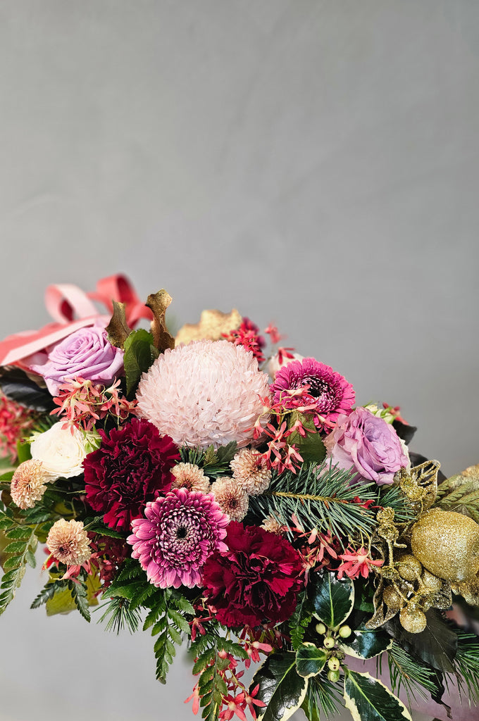It's almost Christmas and this beautiful table arrangement is one of our most popular Christmas deliveries each year. This festive table arrangement is carefully designed with fresh flowers, foliage and Christmas embellishments.