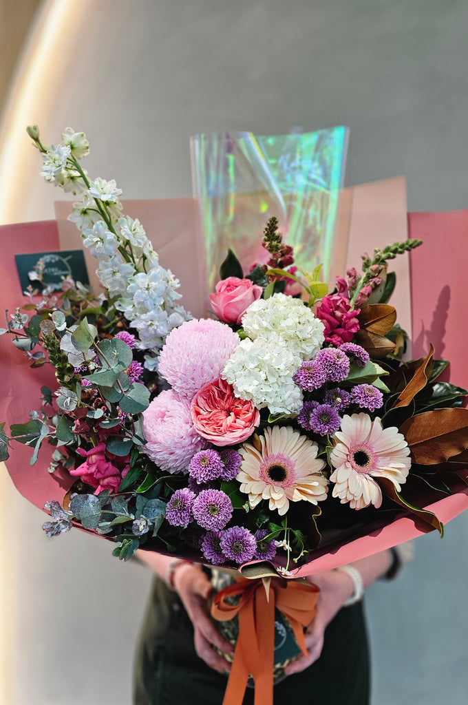 Please note our florists will choose a selection of the the freshest seasonal flowers on the day and this image is just an example of some seasonal flowers that may be included. If you have a specific requirement, please call us on 02 6147 7368 to place your order over the phone.